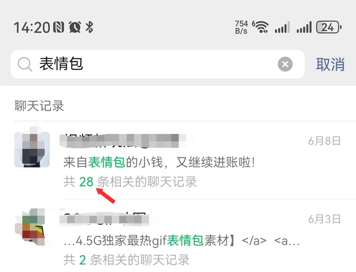 在搜索結果中如果包含有符合條件的聊天記錄時,會在相關的聊天記錄下方以加粗的方式出現“共x條相關的聊天記錄”字樣,并且對聊天記錄的數量以綠色標注,查看更方便。