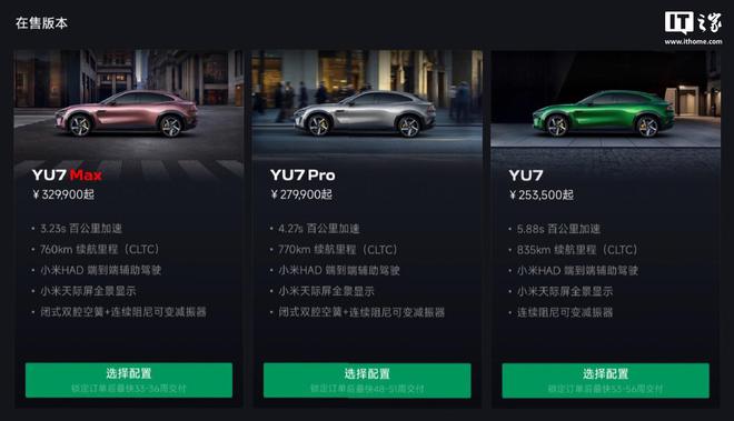 - 小米YU7 Max:鎖單后最快33-36周交付