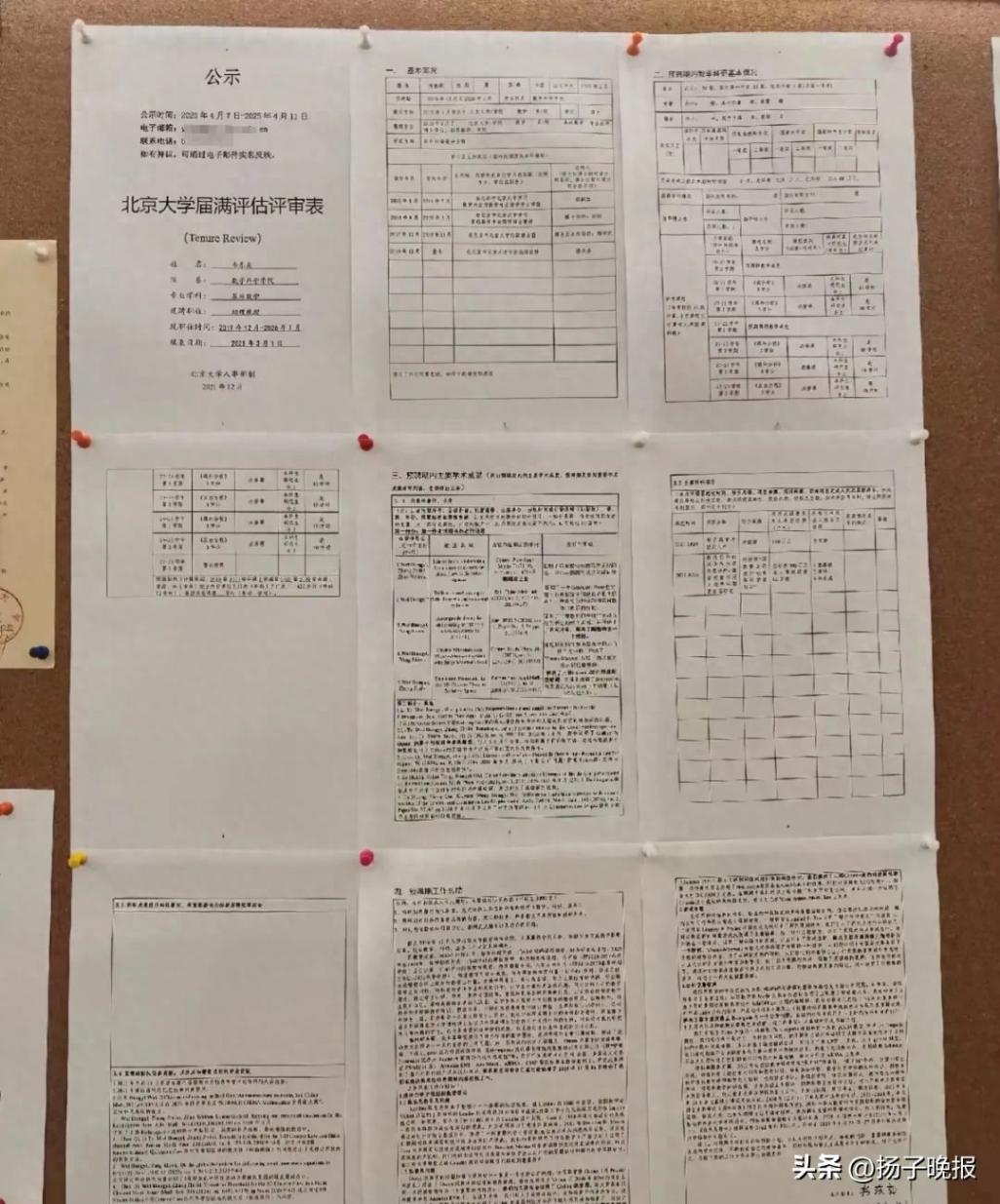 上述照片顯示,該公示材料名為北京大學屆滿評估評審表(Tenure Review),填表人為韋東奕,院系為數學科學學院,專業學科為基礎數學,現任職位為助理教授,現職位時間為2019年12月至2026年1月,填表日期為2025年3月1日,公示時間為2025年4月7日至2025年4月11日。
