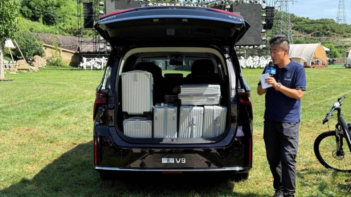 空間方面難能可貴,星海V9越享系列的后備箱容積可以達到593—2616L。可以在滿載的前提下輕松裝下7個人的行李。