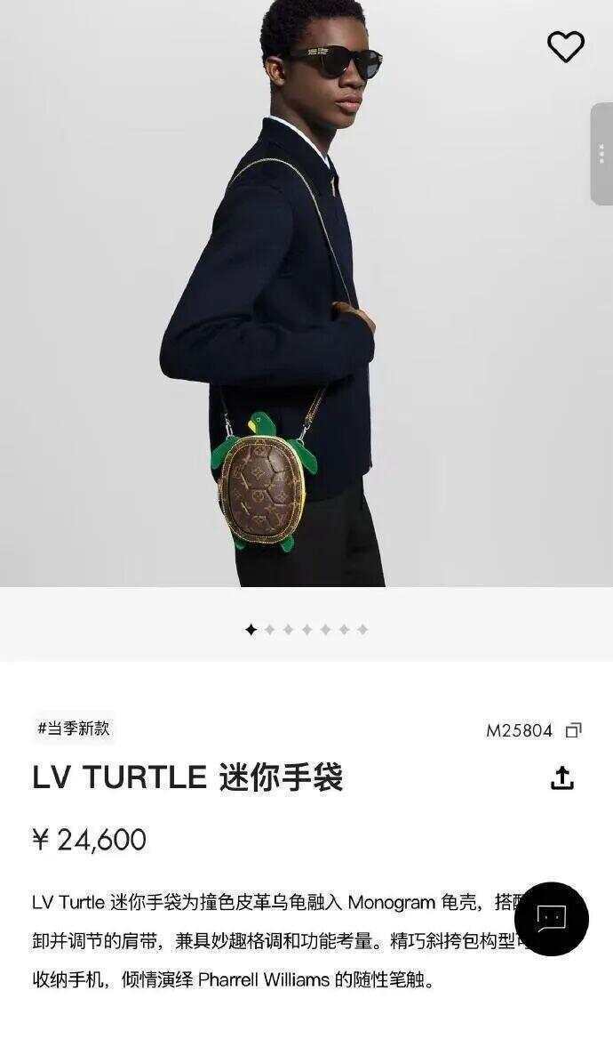 近日,有網友發現LV官網上架了一款外形類似烏龜的迷你手袋。官方稱這款手袋為撞色皮革,融入Monogram龜殼,斜挎包構型可輕松收納手機,售價2.46萬元。