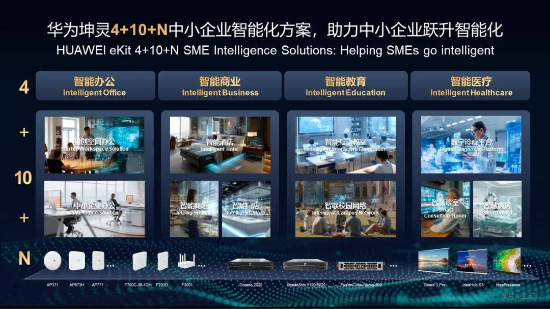 “4”即是基于企業(yè)生產(chǎn)經(jīng)營活動中息息相關(guān)的智能辦公、智能商業(yè)、智能教育、智能醫(yī)療4大核心場景;“10”即是10大一站式場景化方案,包括中小企業(yè)辦公、智能酒店、數(shù)字診療平臺、智能互動教室等方案;“N”即是圍繞四大場景定義的系列化明星產(chǎn)品。