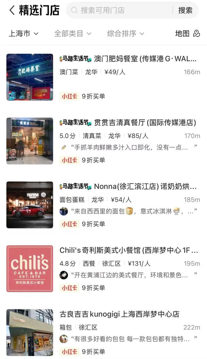 伴隨著第三屆「馬路生活節」在上海、杭州、廣州三城的同步開啟,小紅書正式推出了一款名為「小紅卡」的本地生活訂閱會員服務。用戶花費 168 元購買年卡后,不僅可以獲得參與「馬路生活節」系列活動的門票,還能在接下來的一年里,于數千家精選本地門店中享受全年全店 9 折的優惠。
