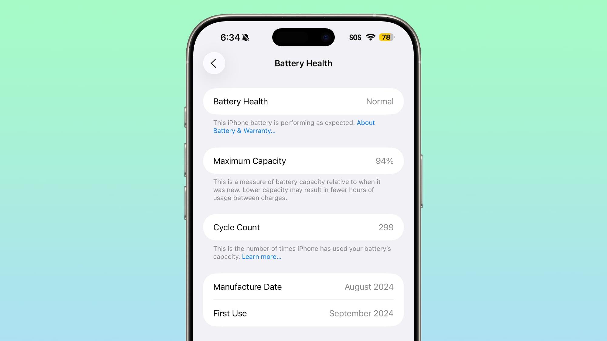 一年后,測(cè)試結(jié)果揭曉。這臺(tái)嚴(yán)格遵守 80% 充電限制的 iPhone 16 Pro Max,經(jīng)過(guò) 299 次充電循環(huán)后,電池最大容量剩余 94%。單看這個(gè)數(shù)字似乎表現(xiàn)不錯(cuò),但與其他對(duì)比數(shù)據(jù)一結(jié)合,結(jié)果卻顯得有些意外。