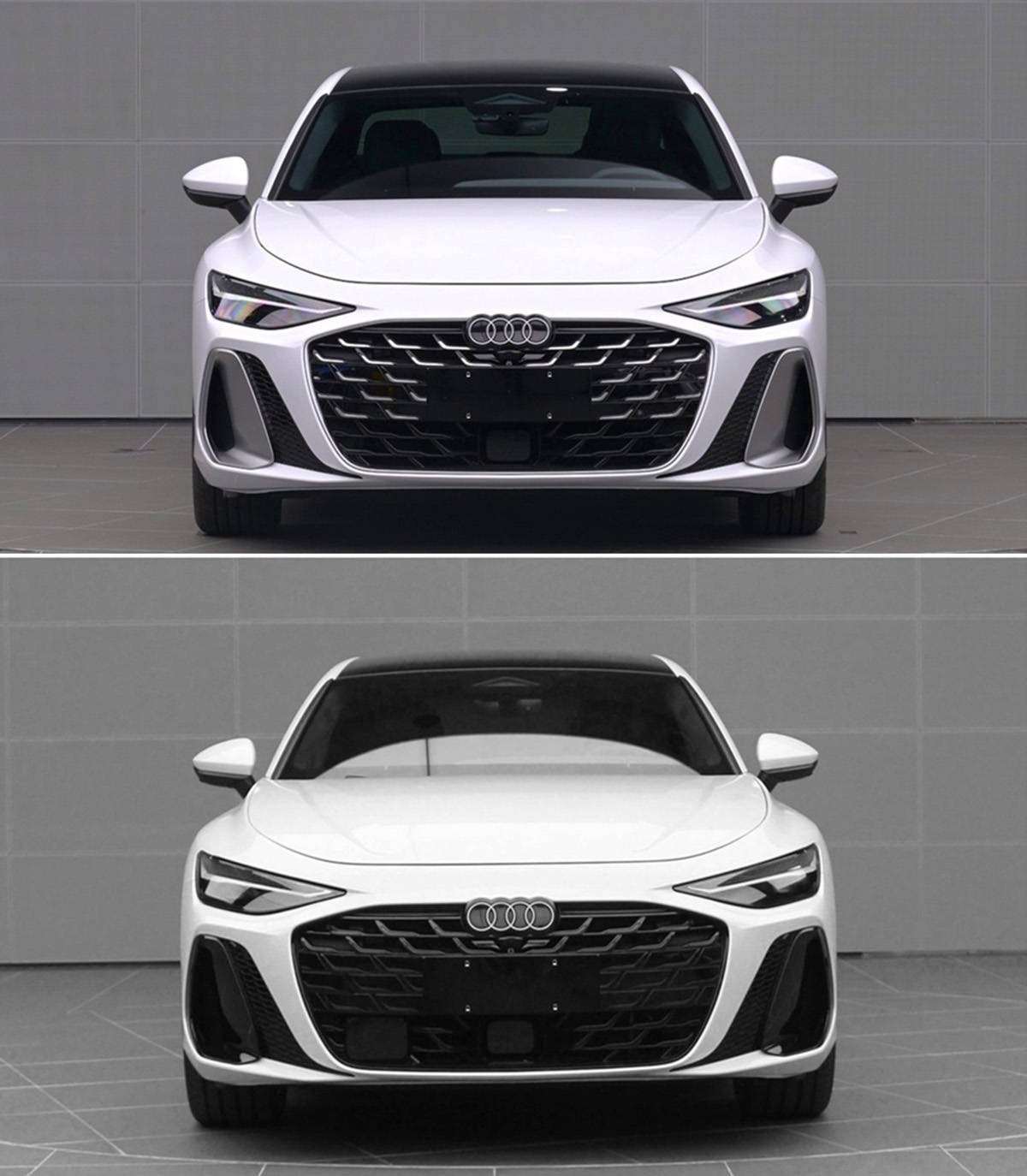 從申報(bào)圖來看,全新一代A6L可以說采用了家族最新的設(shè)計(jì)語言,整車線條更柔和,邊角更圓潤(rùn),細(xì)節(jié)處理也更加精致,其中,前臉提供了兩種風(fēng)格可選,一種是網(wǎng)格狀中網(wǎng)搭配點(diǎn)陣式鍍鉻裝飾,配合前杠兩側(cè)L形鍍鉻條,精致中帶著動(dòng)感;另一種則采用陣列式L形格柵設(shè)計(jì),并提供鍍鉻與亮黑兩種配色,整體更顯凌厲,同時(shí)大燈造型也做了調(diào)整,上寬下窄、內(nèi)側(cè)切角的設(shè)計(jì),眼神可謂是相當(dāng)犀利。