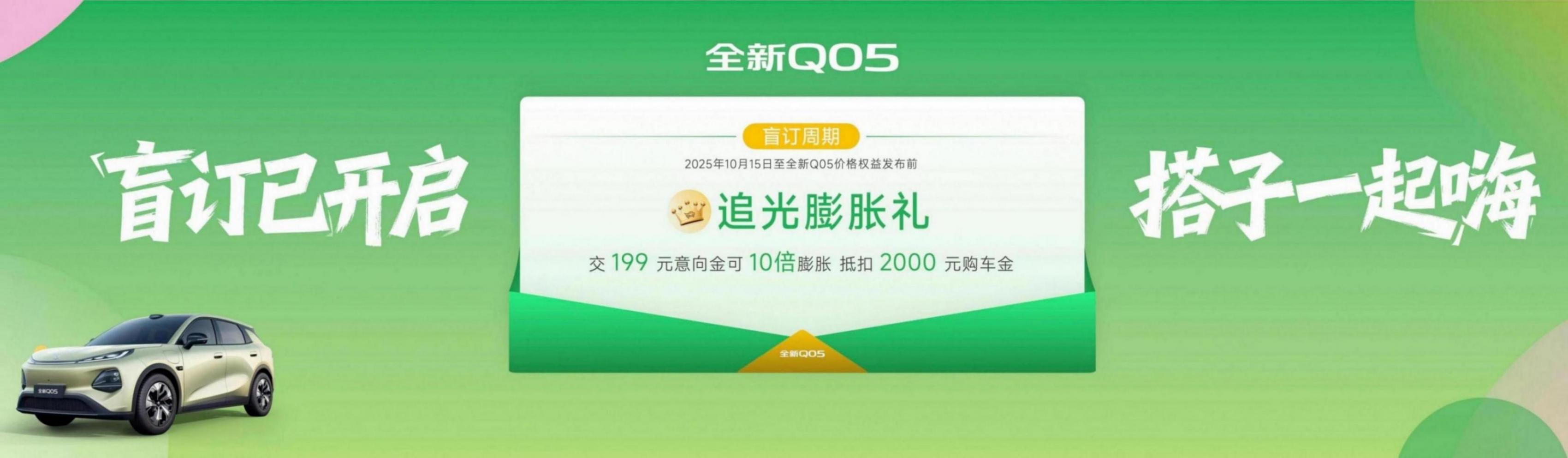 10月15日,長安啟源全新Q05正式亮相首秀并開啟盲訂,即日起至新車價格權益發布前,消費者下訂即享“追光膨脹禮”:交199元意向金,可10倍膨脹抵扣2000元購車金。同時,新車也將會陸續抵達全國各門店。