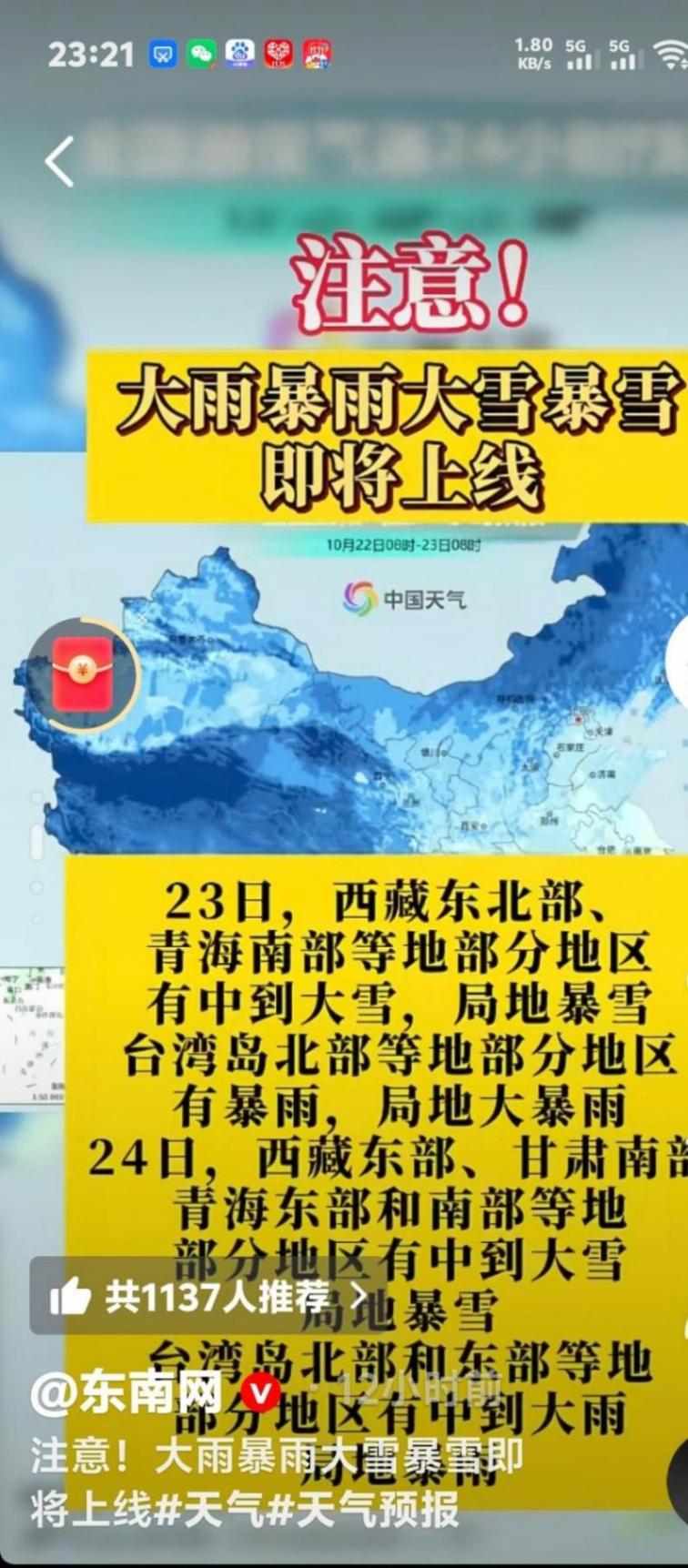 從30日開始,這股冷空氣自北向南影響中東部大部地區。咱們來具體看看不同時間不同地方的天氣情況:22日,臺灣島北部、廣東雷州半島等地部分地區有大到暴雨,其中海南東南部、臺灣島北部等地部分地區有大暴雨,局地特大暴雨;23日,西藏東北部、青海南部等地部分地區有中到大雪,局地暴雪,臺灣島北部等地部分地區有暴雨,局地大暴雨;24日,西藏東部、甘肅南部、青海東南部等地部分地區有中到大雪,局地暴雪,臺灣島北部和東部等地部分地區有中到大雨,局地暴雨。