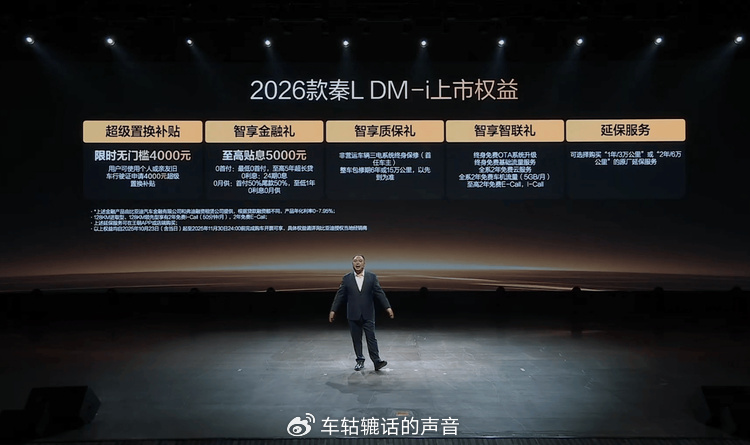 2025年10月23日晚,2026款正式上市,新車共推出兩款車型,置換權益后限時售價分別為9.28萬和10.28萬元。此次2026款秦L DM-i主要是針對一些細節(jié)的改變,并且還針對配置有所提升。