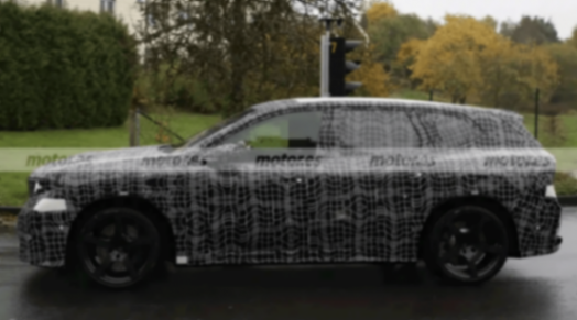 側(cè)面造型iX3差別不大,車頂線條非常平直,因此后排頭部空間無需擔(dān)心。當(dāng)然,隱藏式門把手自然不會(huì)缺席。另外,測試車配備了大尺寸輪圈,不過筆者估計(jì)實(shí)車的輪胎尺寸也不會(huì)小,畢竟這是一臺M性能車。