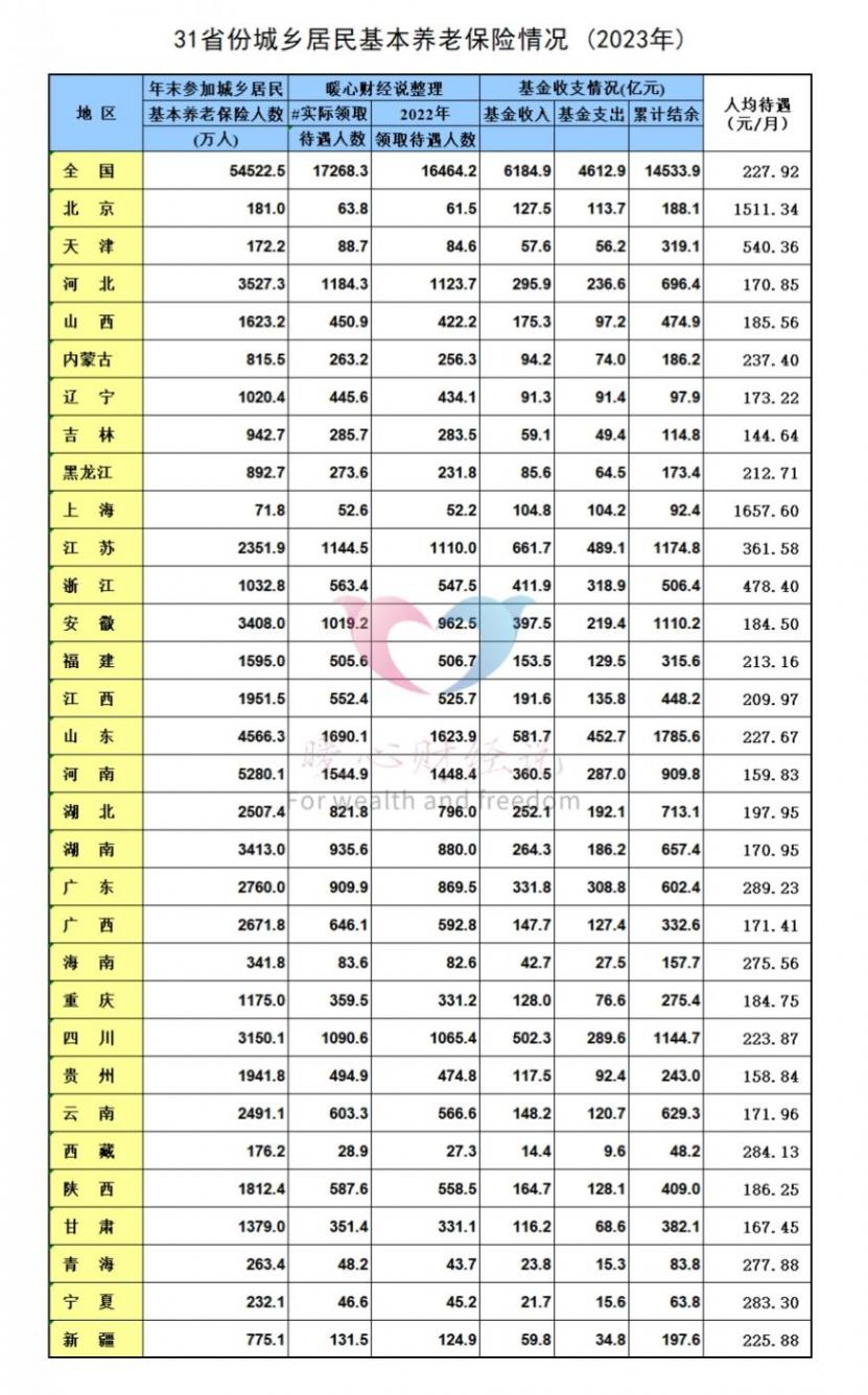 總體來看,城鄉居民養老保險待遇領取人數,實際上要比城鄉居民養老保險待遇領取人員多。2023年末,我國城鄉居民基本養老保險待遇領取人數為17268.3萬人,比職工養老保險的離退休人數多出3000萬人。四川省待遇領取人數是1090.6萬人。