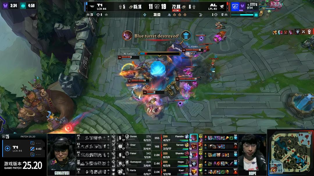 第四局,AL的陣容輸出不足,特別是ADC(物理輸出核心位)選手HOPE前期劣勢裝備落后,導(dǎo)致AL全隊的輸出能力不如對手,被T1將比分扳平。