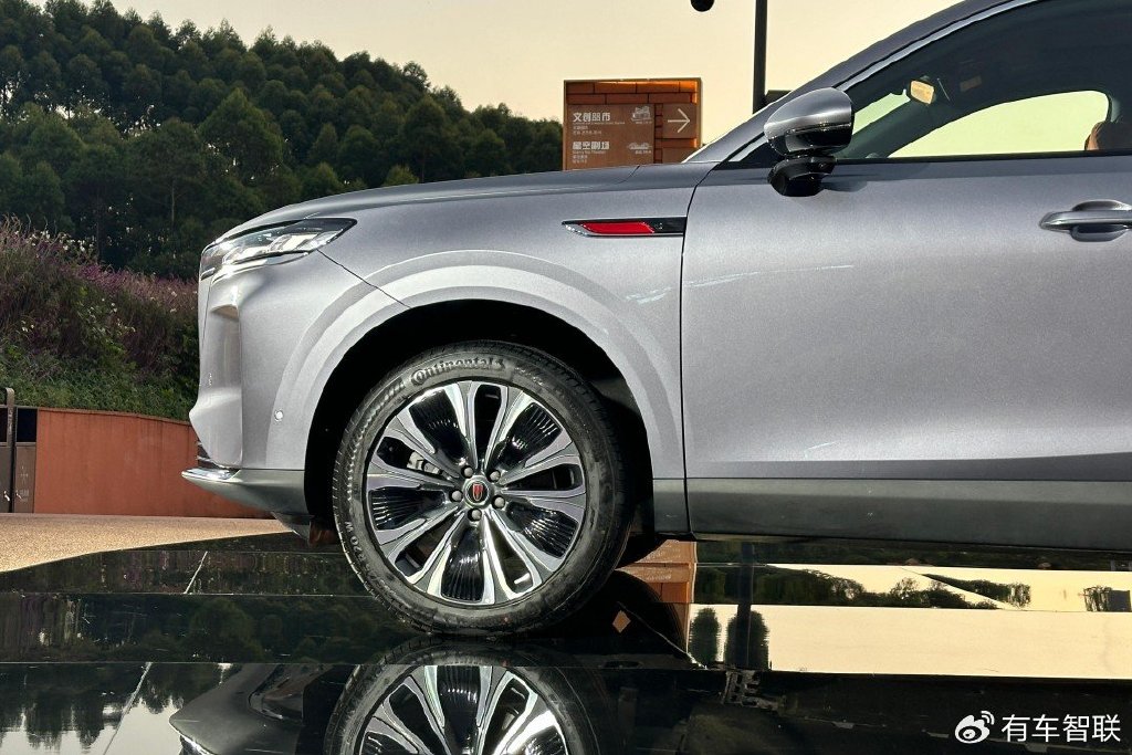 車身側面,新車線條飽滿流暢,微微上揚的腰線賦予這款中大型SUV動感姿態(tài)。車門把手采用傳統(tǒng)設計,車門采用全包式設計,雨天上下車可避免蹭臟褲腿。尺寸方面,新車長寬高分別為4925/1970/1740mm,軸距為2925mm,嚴格遵循1:1.414白銀比例打造。
