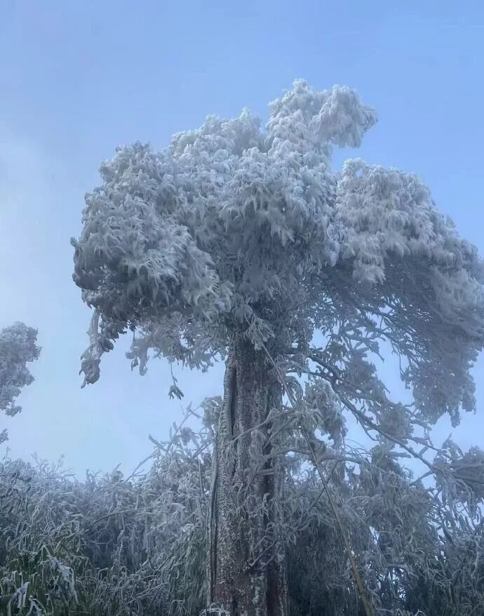 2025年11月18日,受今年下半年第一輪強冷空氣影響,廣東清遠氣溫明顯下降。18日上午,清遠北部部分高海拔山區錄得0℃左右的低溫,最低氣溫出現在清遠連山永和鎮巾子村金子山頂氣象站-1.2℃,一夜速凍,連山金子山出現入秋后首場霧凇冰掛,山間“冰花”再次盛開。